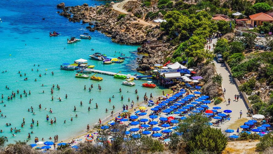 Высокий туристический сезон на Кипре приходится на период с апреля по октябрь включительно, когда температура воздуха здесь составляет +30-35 градусов, и каждый день светит ослепительное солнце. В этот период цены на проживание в отелях находятся на своем пике, а пляжи заполнены отдыхающими.