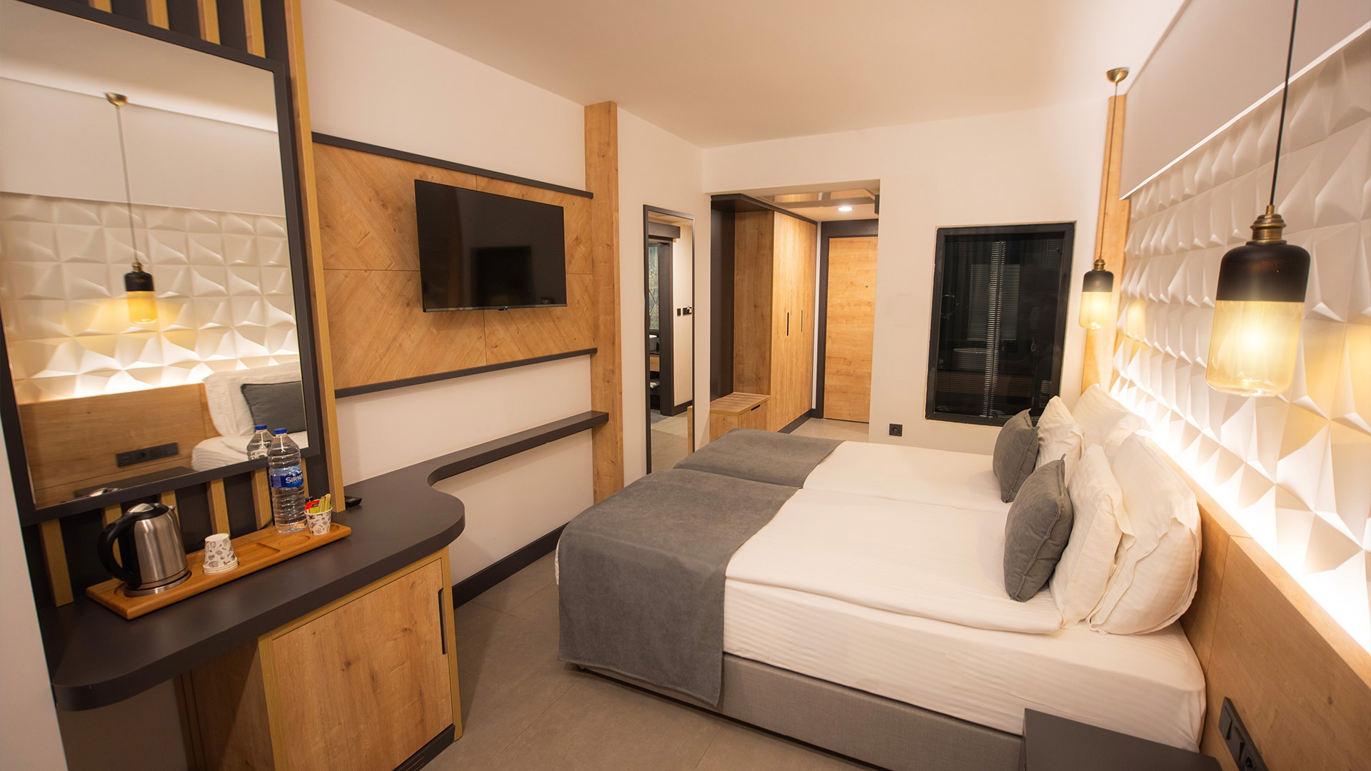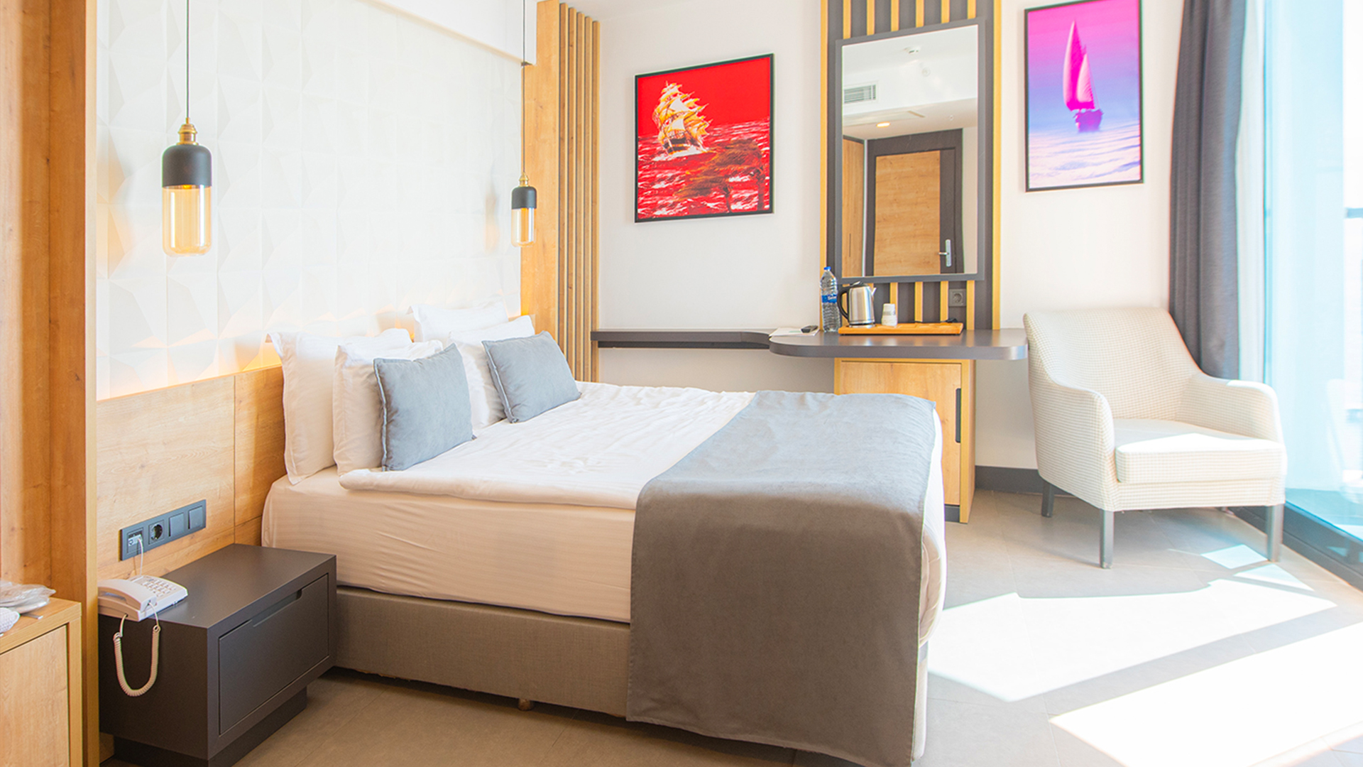 Начнем пожалуй с заселения. Мы приехали после двух часов дня (т.е. после часа заселения), мы заполнили анкету и нам выдали браслеты, сказали ждать номер, займет около ... двух (!) часов. Багаж можно было оставить в комнатке метр на метр, где было еще около 20 чемоданов, взять свои вещи, переодеться в туалете и идти плавать в море. Чтобы войти в море, надо пройти "массаж" острыми камнями, которые находятся на берегу. Лежаков к а т а с т р о ф и ч е с к и не хватает!! Лежаков на весь отель от силы - штук 35! О бассейнах. Есть два бассейна, один крытый, который находится в spa зоне, другой открытый, возле бара. Питание ужасное! Нету практически ничего мясного, одна зелень и десерты! Бутилированной воды также нет. :(( Номер. Номер был у нас на третьем этаже, звукоизоляция хорошая, но внутри номера... Сначала не работал телевизор, потом сломался кондиционер. Хорошо, что хоть кровати целые. Мы останавливались в этом отеле всего на неделю. Из логических соображений, можно понять, что убираться в номере должны ежедневно. Ладно первый день не убирались, но что было дальше... Мы подходили и к нашему гиду, и на ресепшен с просьбой убрать наш номер, всё безрезультатно. Убрались только на пятый (!) день, после того как мы вывесили на дверь в нашу комнату записку горничной что бы убрали нашу комнату, да еще и на трех языках (русский, английский и турецкий, ну так, на всякий случай). Вообщем, моя оценка 1 из 5 баллов. Категорически не рекомендую этот отель.
