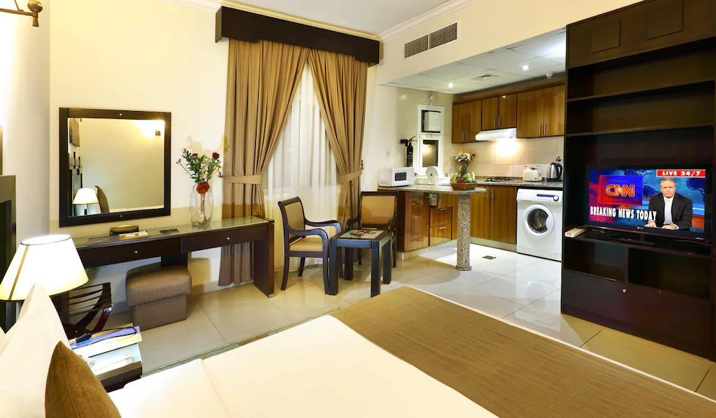 Имеет большие и комфортабельные номера. Имеет разумную цену. Люди очень добрые! Место также очень хорошо! Завтрак также очень хороший и полный вариантов для всех потребностей. Лучший вариант в шарджах! Отличный сервис!